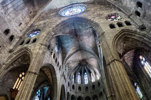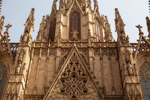 Die Kathedrale von Barcelona, Catedral de la Santa Creu i Santa Eulàlia de Barcelona, fertiggestellt im 15. Jh., gilt der Heiligen Eulalia von Barcelona, der Patronin der Stadt: