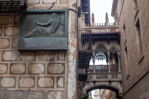 Zunächst der wundervolle Fries von Picasso an der Architektenkammer, Col·legi d’Arquitectes de Catalunya, im Gotikviertel am Plaça de la Seu, gegenüber der Kathedrale von Barcelona: