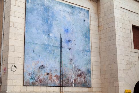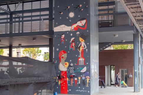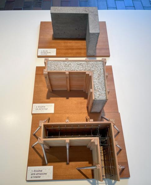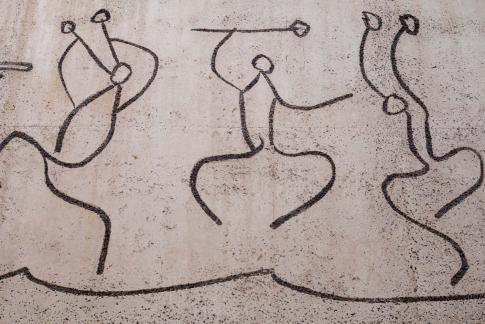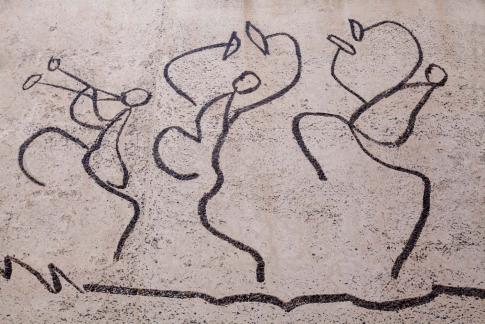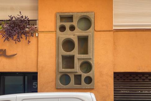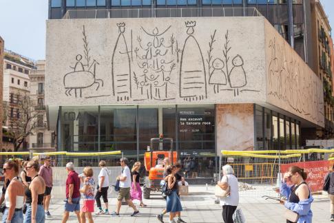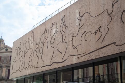 Von Carl Nesjar nach Entwürfen von Pablo Picasso: Els Tres Frisos de la Mediterrània: El Fris de la Senyera. El Fris dels Gegants. El Fris dels Nens. 3 sandgestrahlte Betonzeichnungen, 4,25x25/10/25m, 1960.