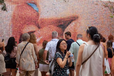 Joan Fontcuberta: El món neix en cada besada | The World Begins With Every Kiss. O. A., 2014. Ein beliebter Selfiespot auf der Plaça d'Isidre Nonell.