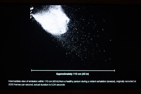 Lydia Bourouiba: Turbulent Gas Clouds and Respiratory Pathogen Emissions: Potential Implications for Reducing Transmission of COVID-19. Filmstill, vídeo, b/n, sense so, 1:37min., 2020. Publicat a JAMA Network, 26.3.2020. The Fluid Dynamics of Disease Transmission Laboratory, Fluids and Health Network, Massachusetts Institute of Technology.