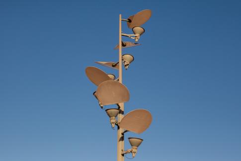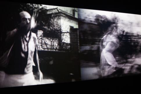 Maria Kourkouta: Treís ánemoi tou Aiólou. Detail, filmstill, pel·lícula de 16mm transferida a vídeo, projecció en 3 canals, b/n, so, 6min., videoinstal·lació feta amb fragments de la pel·lícula Epistrofí stin odo Aiolou (Tornada al carrer d’eole, 2014) i la peça musical Orient-Occident (1960) de Iannis Xenakis, 2023. Col·lecció de l’artista.