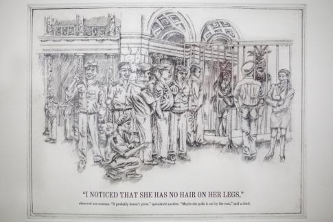 Text: „I noticed that she has no hair on her legs,’ observed one seaman. ‚It probably doesn’t grow,‘ speculated another. ‚Maybe she pulls it out by the root,‘ said a third.“