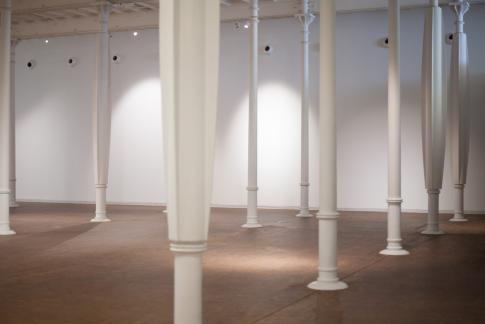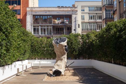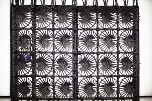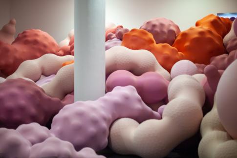 Eva Fàbregas: Supurant | Oozing. Detail, teixit elàstic, plàstic i aire, 2023–24. Obra co-produïda pel MACBA i la Fundación Botín.