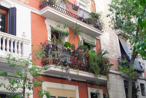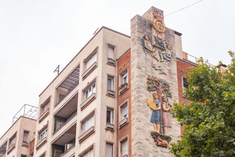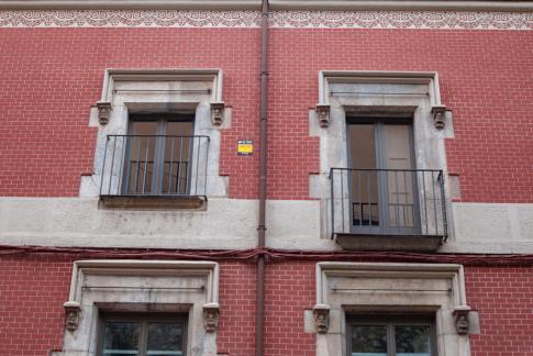 Ein Wohnkomplex der Pensionskasse, genannt Poeta Marquina, 2016 restauriert; edificio propiedad de la Caja de Pensiones para la Vejez y de Ahorros. Hier kommt man auf dem Weg zum Bahnhof vorbei.