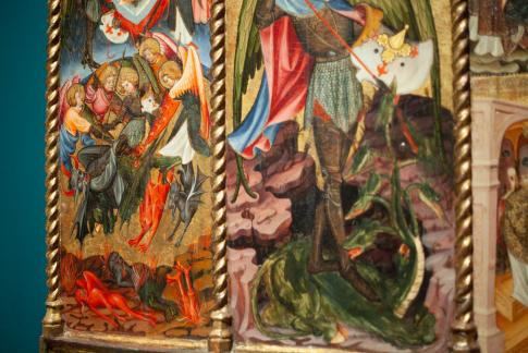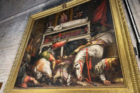 Das Gebäude ist nicht einfach zu fassen, über den Innenhof geht es zur ehemaligen Theaterbühne, einem nun überkuppelten Saal, und um diesen winden sich über drei Stockwerke hinweg teils schmale Gänge, von denen wiederum Ausstellungsräume abgehen, mal klein, mal ganze Säle, immer verwinkelt und meist von oben bis unten wundervoll vollgestopft. Die Bildangaben sind großteils sehr sporadisch, gelegentlich habe ich einige aus dem deutschen Museumsführer entnommen. Leider ist die virtuelle Tour ebenfalls ohne viele Angaben, bietet dafür aber online einen Zugang.