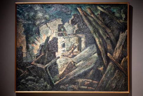 Shiro Tsukihara: Inside the Yellow Flames. Reproducció, tintes i llapis sobre paper, 2002. Col·lecció The Hiroshima Peace Memorial Museum.
