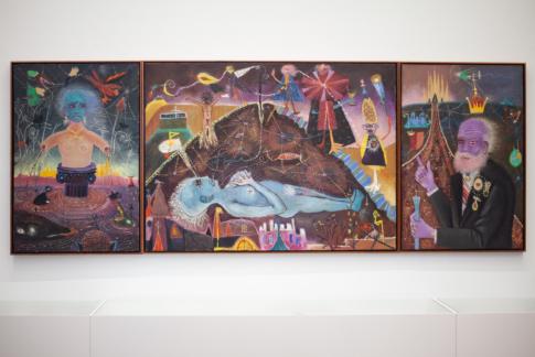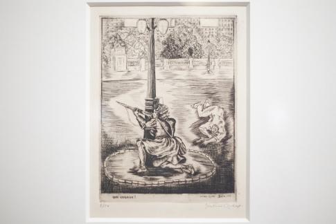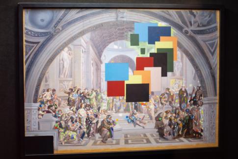 Atenes crema! Element esquerre de l’obra estereoscòpica, basat en l’esola d’Atenes de Rafael | Athens is Burning! Left element of the stereoscopic work, based on Rafael’s The School of Athens. O. A., 1979–80.
