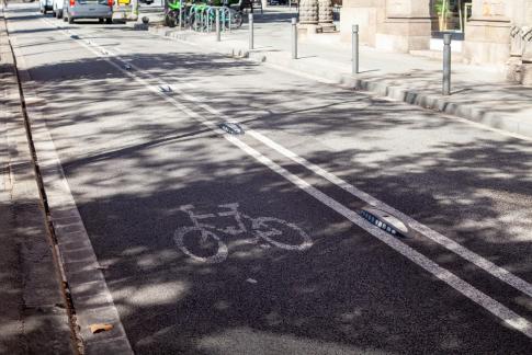 Was für eine gute und simple Lösung, die breiten Radwege durch kleine schlafende Polizeikräfte von der Autospur zu trennen.
