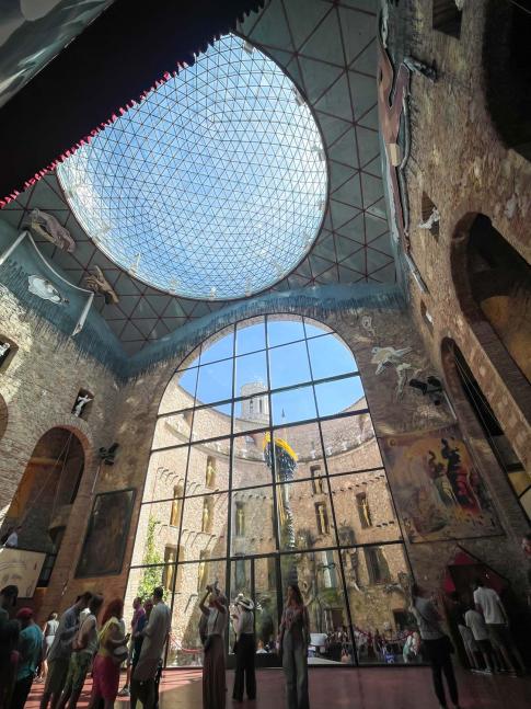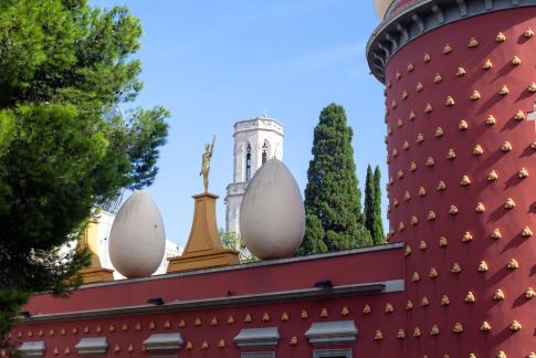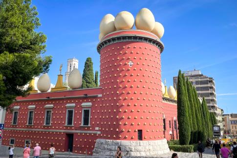 Auf zu Salvador Dalí (1904–89, geboren und verstorben in Figueres) ins Teatre-Museu Dalí. Es handelt sich um ein ehemaliges Theater, dass Dalí seit 1961 als sein Museum umplante und das schließlich 1974 eröffnete. Bis zu seinem Lebensende 1989 nahm Dalí Änderungen vor und fügte neue Werke hinzu. Hier mehr zur Geschichte des Museums.