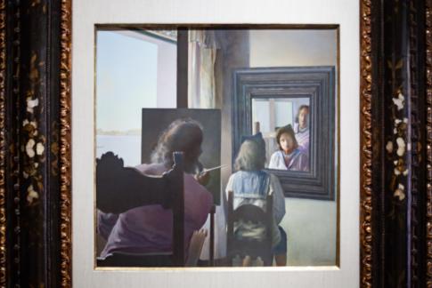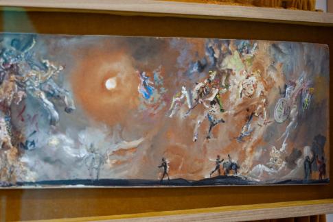 Dalí d’esquena pintant Gala d’esquena eternitzada per sis còrnies virtuals provisionalment reflectides a sis miralls vertaders | Dalí from the Back Painting Gala from the Back Eternalized by Six Virtual Corneas Provisionally Reflected by Six Real Mirrors. O. A., 1972–73.