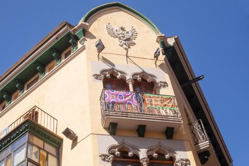Dem ersten Eindruck der Farben folgt der zweite der Politik, die einem hier immer wieder begegnet: 2017 wurde das Referendum der Erklärung zur unabhängigen Republik Kataloniens nicht von der spanischen Regierung anerkannt. Seither, so heißt es, schwelle die separatistische Bewegung weiter. Ich stecke zu wenig in der Thematik, um mir eine abschließende Meinung bilden zu können. Obwohl ich prinzipiell immer für Unabhängigkeit bin, tendiere ich aktuell eher gegen ein vermehrtes Aufsplittern und für ein geeinteres Europa. Das schließt natürlich nicht aus, dass lokale Kulturen fortgelebt werden sollten. Die überall ausgehängte katalanische Flagge bzw. die von der Unabhängigkeitsbewegung bevorzugte Variante der Estelada Blava, also inklusive blauem Dreieck und weißem Stern, ist wohl der am Offensichtlichsten gelebte Lokalpatriotismus. Daneben findet sich die katalanische Sprache zum Beispiel in so gut wie allen Ausstellungen an erster Stelle. Eine Anmerkung dazu: Der sogenannte punt volat, der schwebende Punkt, „·“, den ich als Gendersternchen verwende, ist ein katalanisches Sonderzeichen zur Trennung doppelter Ls innerhalb, nicht aber am Anfang eines Wortes, etwa von col·lecció oder metàl·lic.