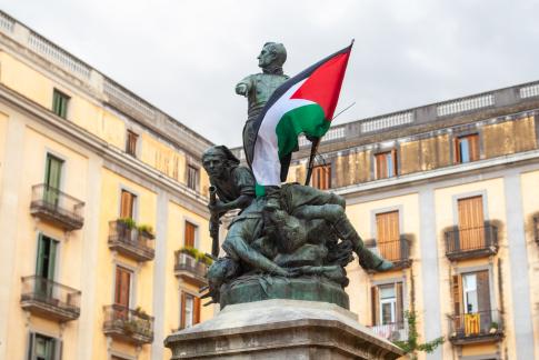 A los defensores de Gerona en 1809 y 1809. Am Plaça de la Independència den Verteidiger·innen der Stadt gewidmet, als Girona 1808 unter Napoleons eingenommen wurde. Gegenwärtig mit palästinensischer Flagge bestückt.