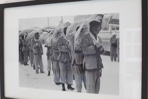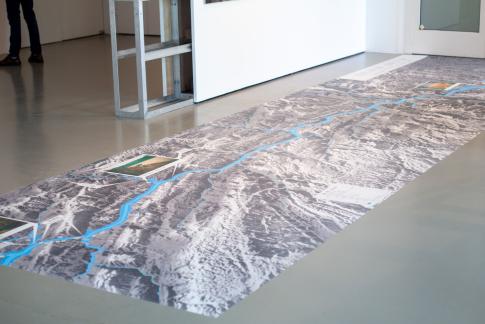 Zhuang Hui 庄辉 (*1963): Longitude 109.88, Latitude 31.09. Detail, div. Größen, Schwarzweiß-Fotografien auf Papier, Video (Farbe), (hier im Bild:) Druck auf Vinylfolie, 1995–2008. Courtesy Zhuang Hui.
