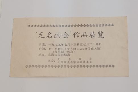 Einladung zur ersten Ausstellung der No Name Group 无名画会. 7,5x13,5cm, Druck auf Papier, 1979. Courtesy Wang Youshen.