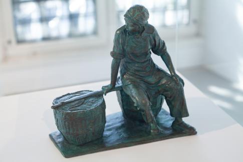 Figur eines Mädchens aus der Skulpturengruppe „Rent Collection Courtyard 收租院“. 30x15x30cm, Bronze, 2005. Courtesy documenta Archiv, Dauerleihgabe der Stadt Kassel.