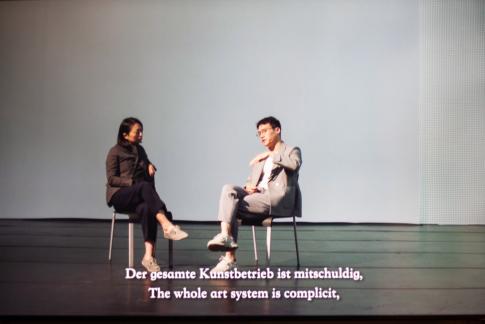 Text: „Der gesamte Kunstbetrieb ist mitschuldig,“.